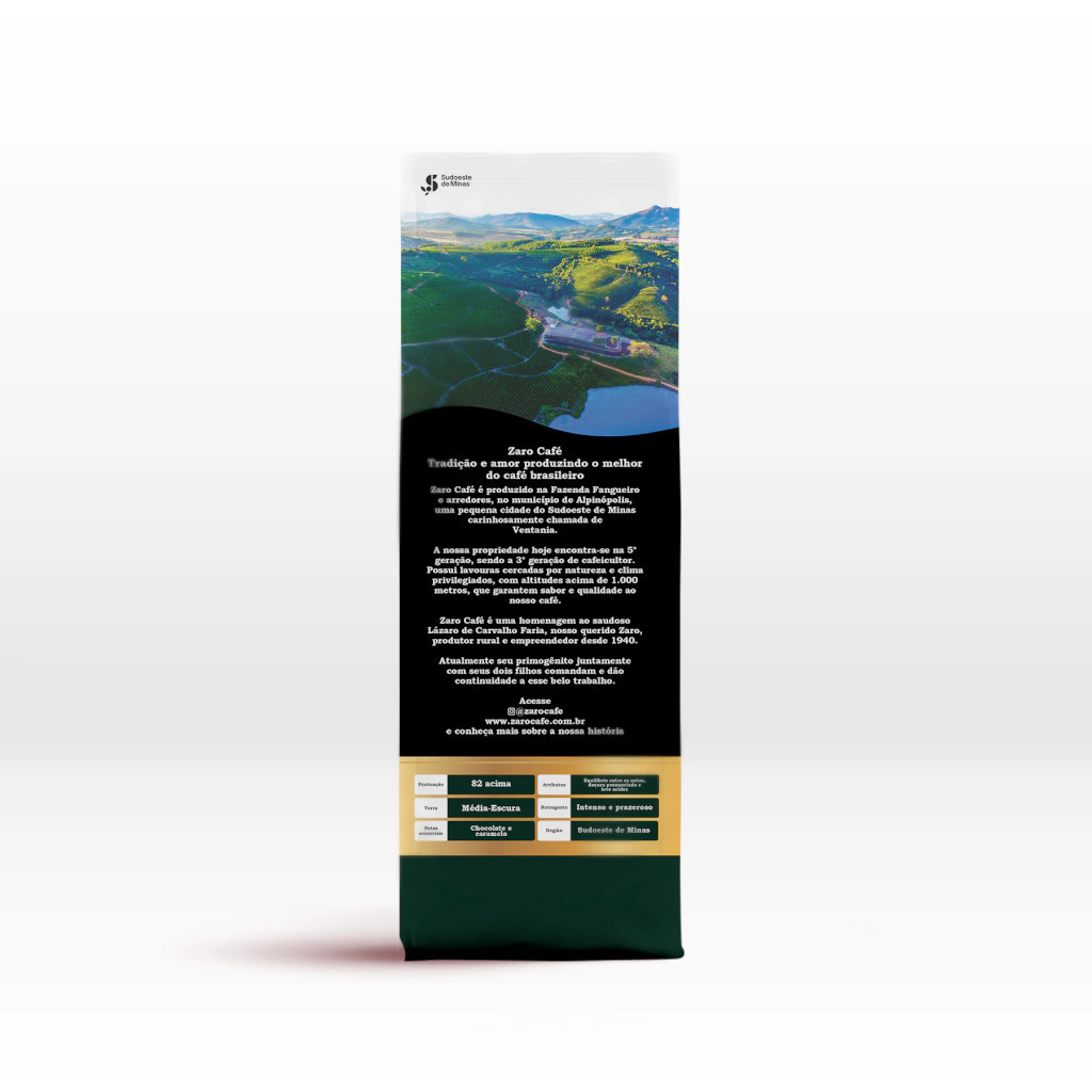 Indulging in ZARO CAFÉ Whole Beans is a unique experience of pure and enjoyable aroma. These high-quality beans, freshly roasted, can be ground to your preference, unlocking a burst of aromas and flavors in all types of preparation. Carefully selected for their superior quality, these coffee beans are cultivated in the lands of Southwest Minas, known for their high altitudes and favorable microclimate for coffee cultivation. This contributes to the distinct flavor profile and exceptional quality of the bean. Our roasting curve is meticulously adjusted to highlight the coffee's unique characteristics, ensuring an unparalleled tasting experience.