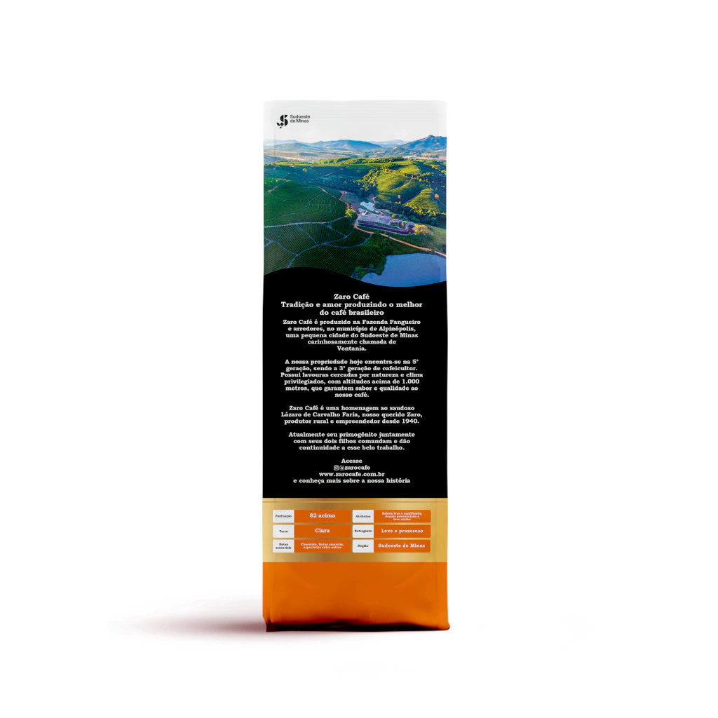 Enjoying ZARO CAFÉ in Beans is an experience of pure and enjoyable aroma, with high-quality, freshly roasted beans, allowing you to grind them according to your preference, enabling an explosion of aromas and flavors in all types of preparation. Selected for their superior quality, these coffee beans are grown in the Southwest of Minas Gerais on high-altitude lands with a favorable microclimate for coffee cultivation, contributing to the bean's distinct flavor profile and exceptional quality. Our roasting curve is carefully adjusted to highlight the coffee's unique characteristics, ensuring an unparalleled tasting experience.